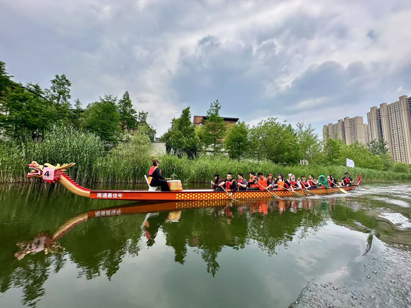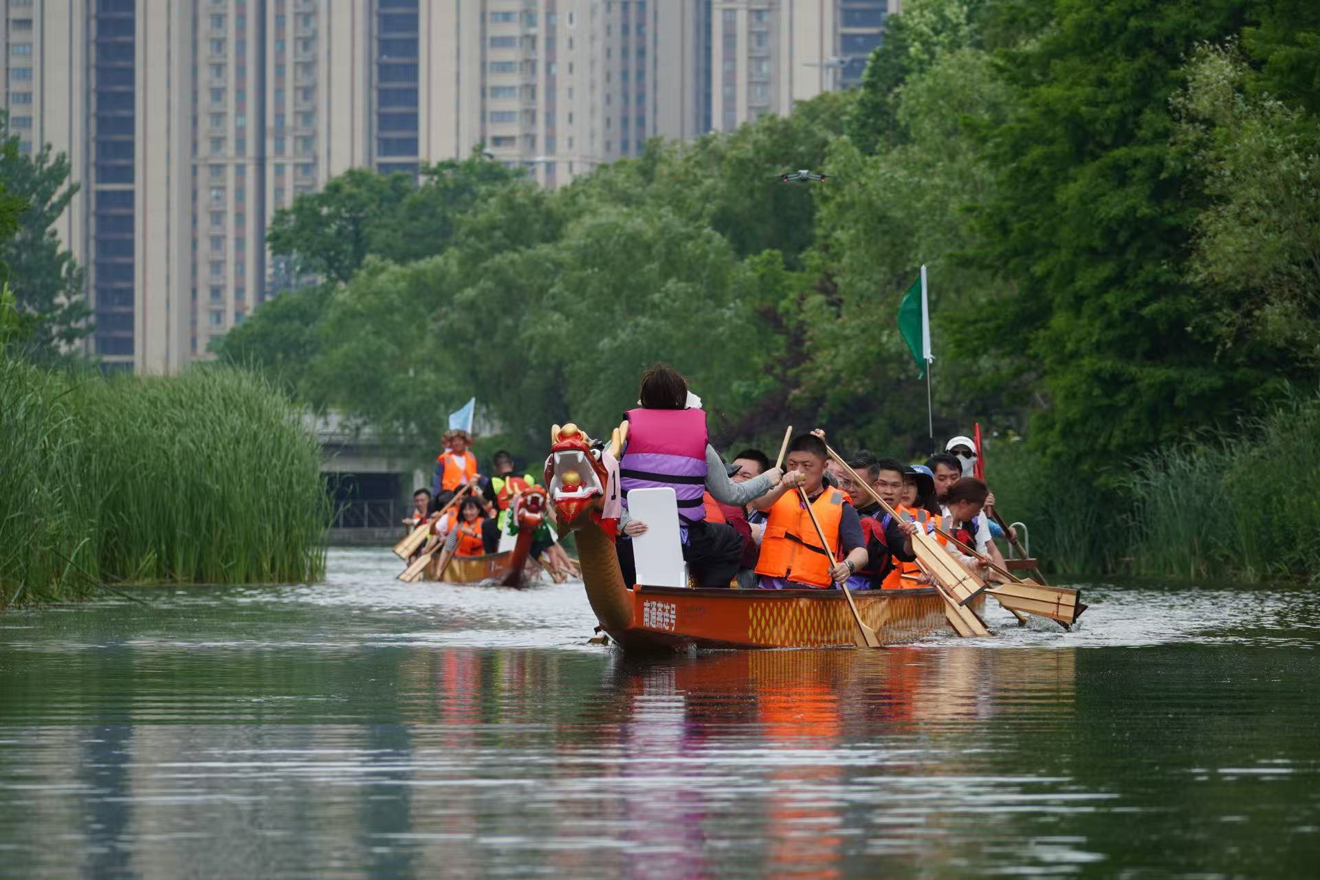 比賽過程中,各支隊伍你追我趕,競爭激烈。有的隊伍起初稍顯落后,但隊員們毫不氣餒,迅速調整節奏,憑借著頑強的毅力和默契的配合,逐漸迎頭趕上;有的隊伍一馬當先,始終保持領先優勢,展現出強大的實力。在龍舟競技中,隊員們深刻體會到了團隊合作的重要性。只有心往一處想,勁往一處使,聽從指揮,相互配合,才能讓龍舟快速前進。每一次劃槳的力度、速度和方向都需要團隊成員高度一致,任何一個人的失誤都可能影響整體的節奏。